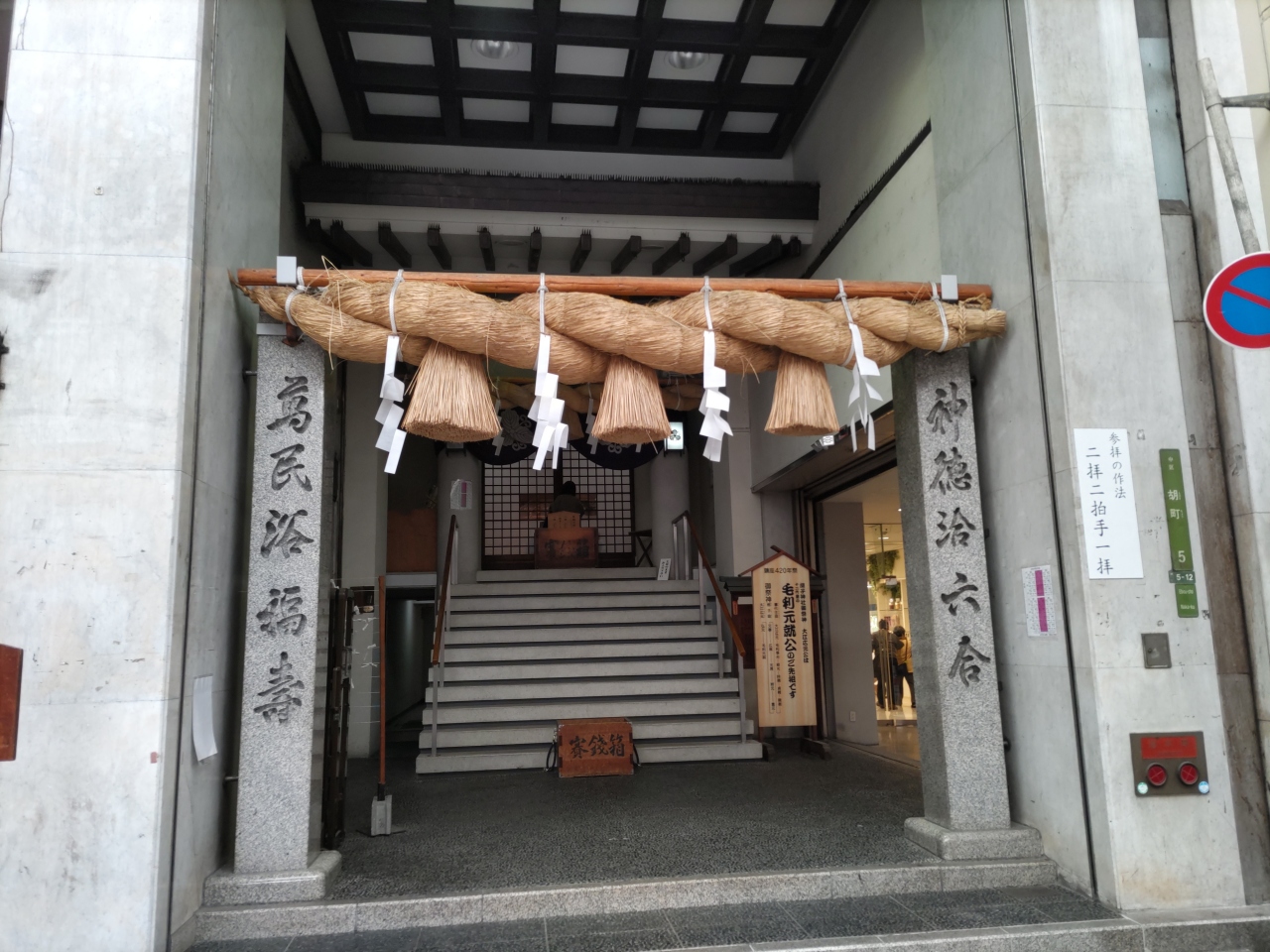 広島市中心部のビルにある神社、大祭は溢れんばかりの人