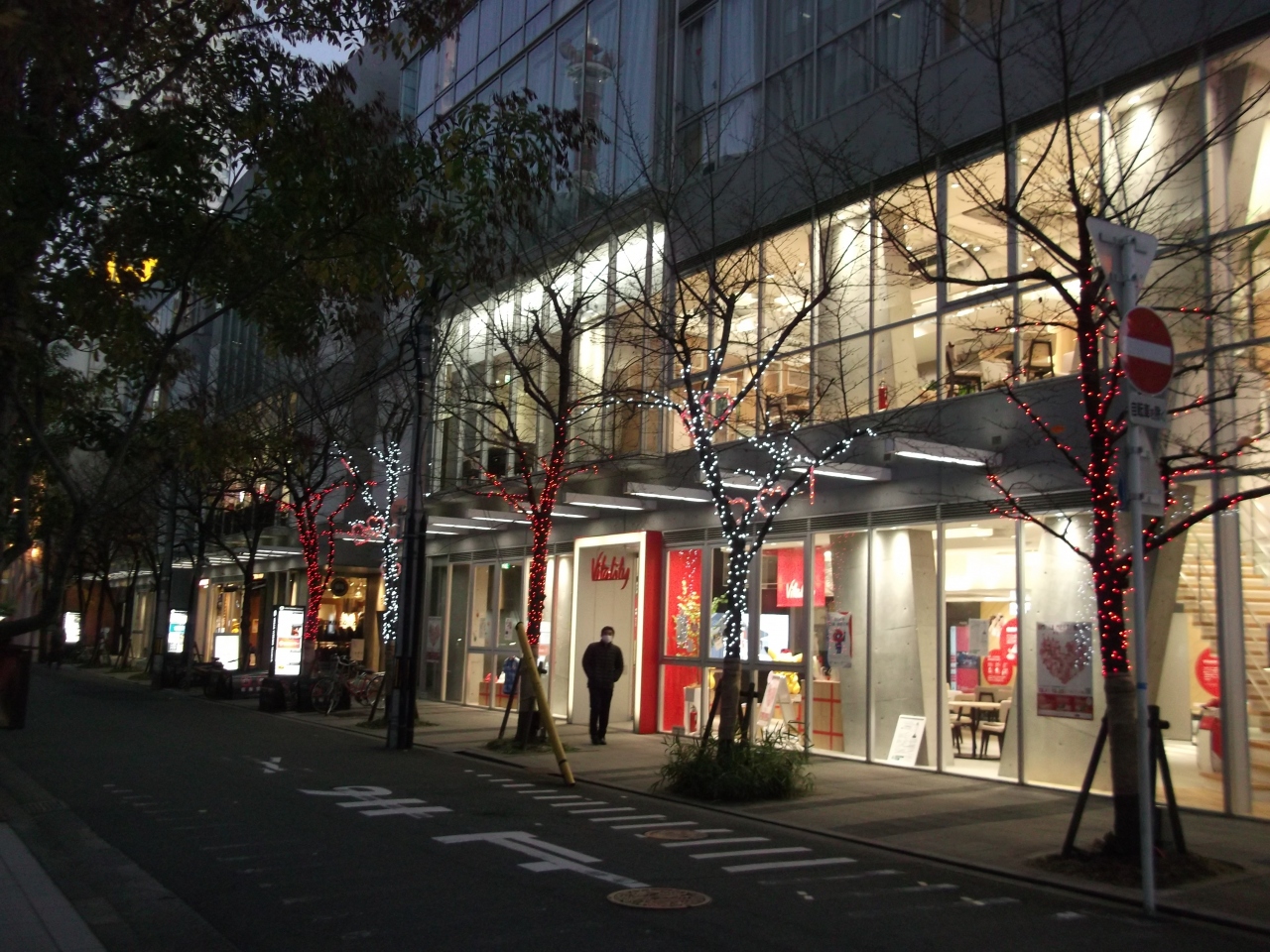 阪急梅田駅を出て阪急三番街を通り抜け歩いて3分ほど、梅田芸術劇場前の通りです。長さは100メートくらいですが、街路樹がきれいに整備されていて美しいです。劇場の前は小さな広場のようになっていて、ちょっと腰掛けて休むのにも良さそうです。