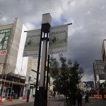 薬局や衣料品店、いろいろなお店があります。三条通り沿いにある飲食店も混んでいました。とてもきれいに整備された通りで、歩道も広く歩きやすいです。