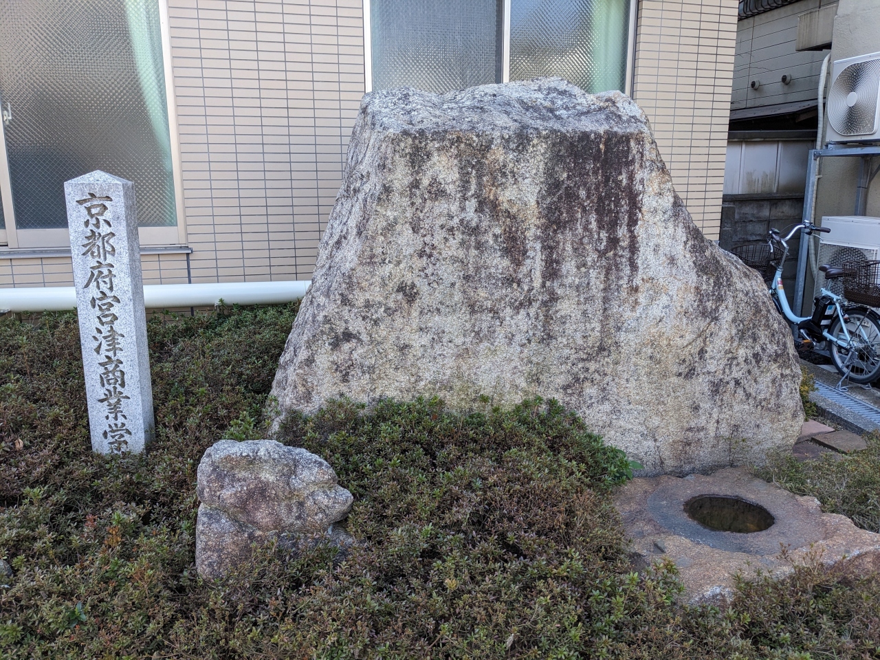室町時代からの名門、細川氏ゆかりのお城があった場所です。宮津市内の大通り沿いに石垣の片割れの一部とともに石碑が立っておりました。今は当然ながら影も形もありません。戦国時代としては珍しく、山城ではなく平地に建てられていたのですね。
