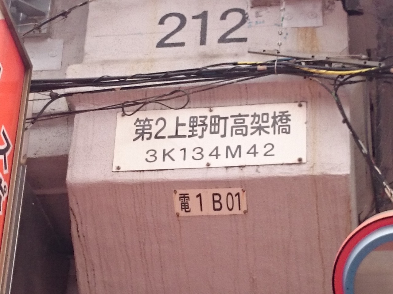 JR上野駅から御徒町方面へ徒歩7~8分程度、忍川橋架道橋より御徒町寄りのJR線路が高架になっている部分が第二上野町橋高架橋です。最初の架橋は大正13年(1924年)なのだそうです。現代ではアメ横の店舗が高架下に並び、橋の原型を確認する事は難しい状態です。