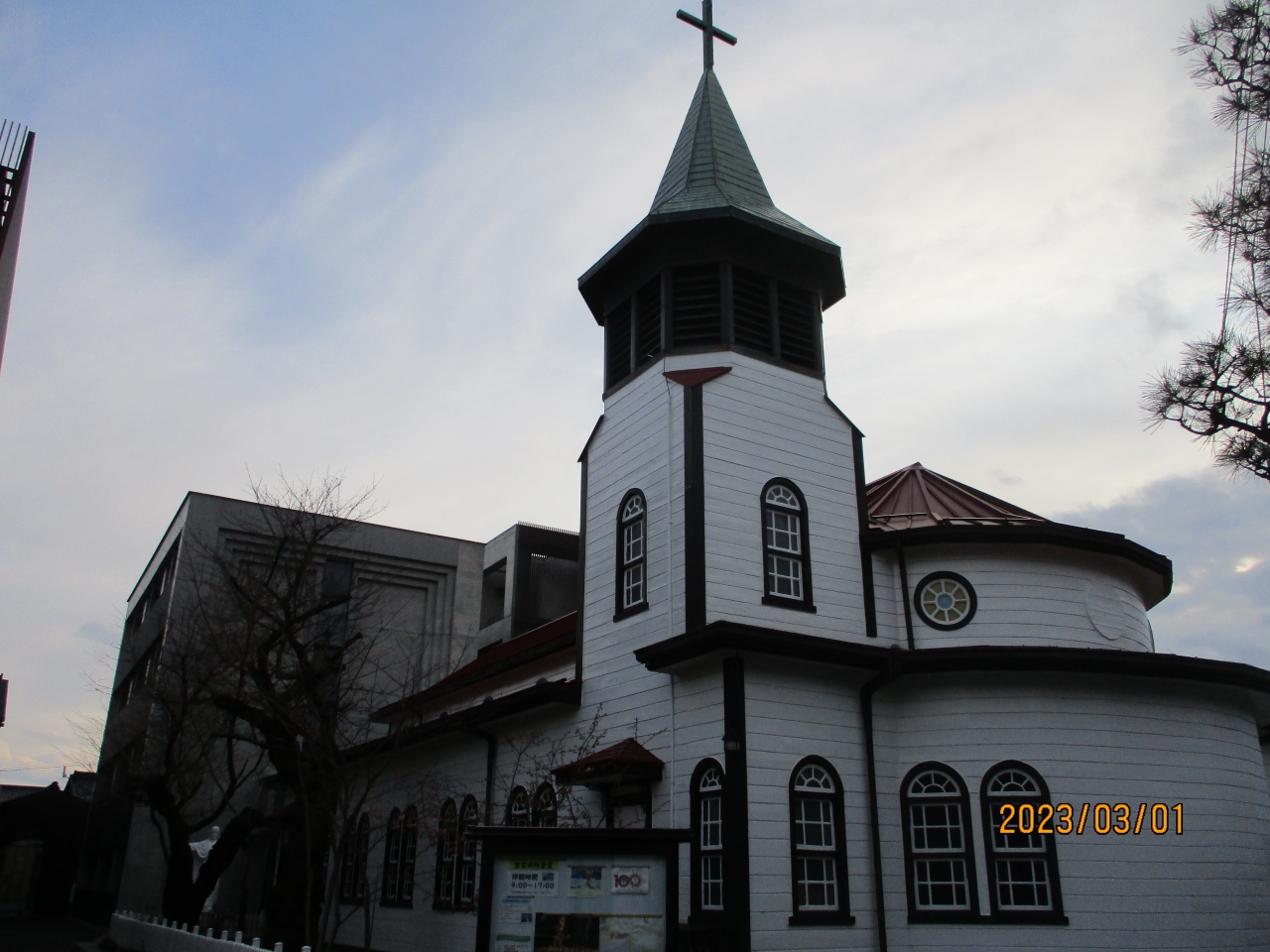 長町武家屋敷跡の近くにある「金沢聖霊総合病院」の敷地内にある聖堂です。スイス人建築家マックス・ヒンデル氏が設計、昭和初期に建てられました。聖堂内の円柱・アーケードアーチなどロマネスク様式の木造教会です。柱の黒漆塗り、金箔工芸、アーチの群青と金など金沢の伝統的な色彩を採用など、金沢らしさが感じられます。半分が畳敷きなのが珍しかったです。(もとは全部畳敷きだったとか)素敵な教会です。