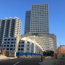 櫓獅子の骨組みのようなデザインの鉄骨の橋。