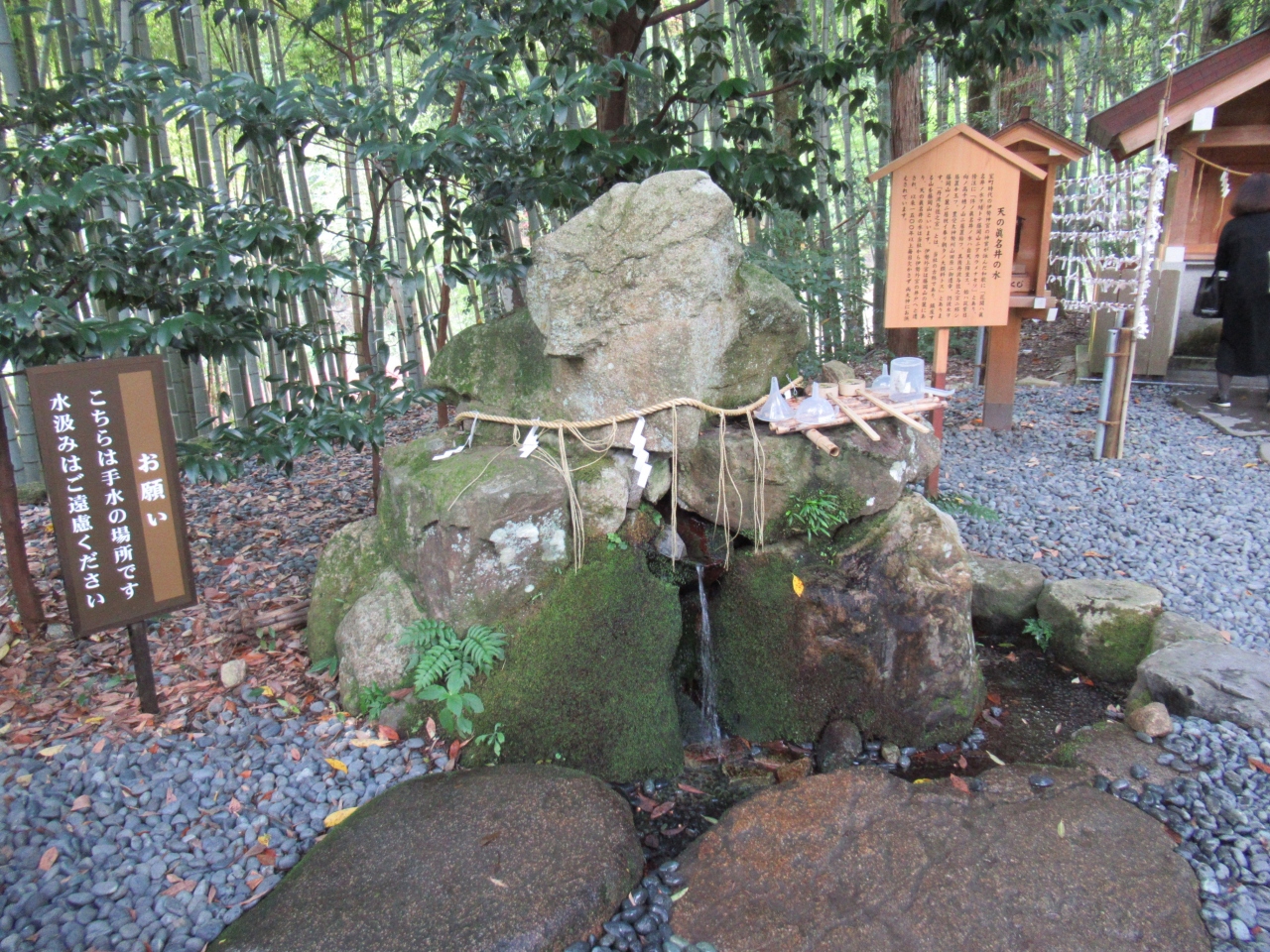 真名井神社の境内にはご霊水である「天の真名井の水」が湧き出ていて、真名井の名水と呼ばれており、訪問時もポリタンクに水を入れている方がいました。
