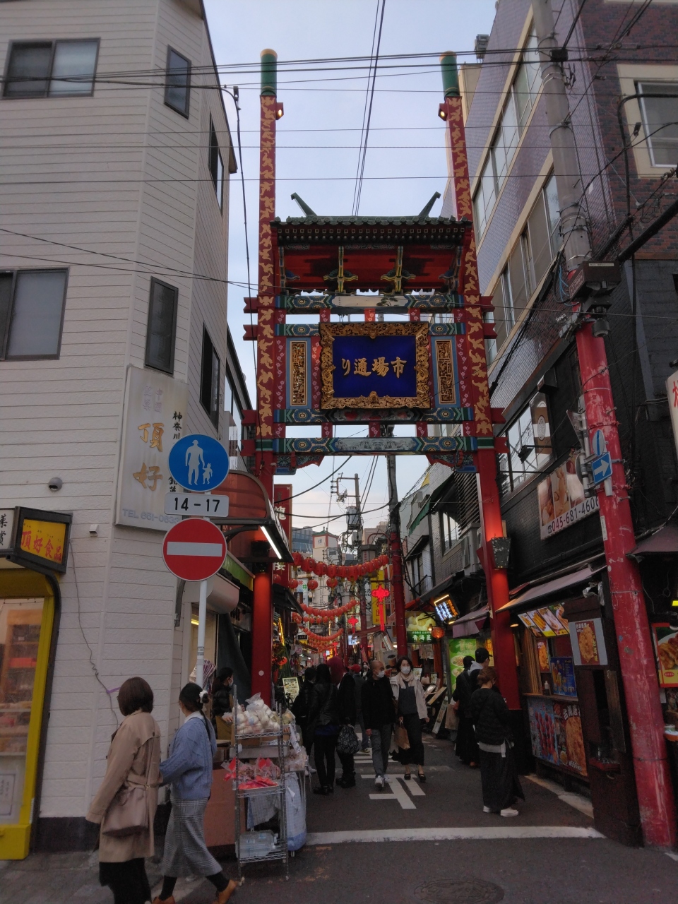 横浜中華街の関帝廟通りの中央当たりで交差する、市場通りの入口にこの門が立っています。赤い柱が色鮮やかで、門の装飾も派手でとても目立っています。市場通り沿いのお店はリーズナブルなお店も多く、気軽に立ち寄れるのが嬉しいです。さらに先に行くと占いのお店も並んでいます。