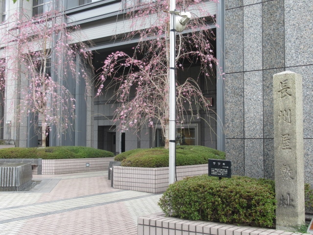 河原町通りを歩いていると御池通りの北東の角にホテルオークラ京都がありますがそのホテルの西側に「桂小五郎像」は建っています。皆さまご存知の長州藩士出身で、のちの木戸孝允として近代日本の礎を築いたひとりとして有名ですね。像の前にはベンチがあり像を背景に写真でもいかがでしょうか。明治維新の舞台となった京都には多くの史跡などが残されていますが特にこの付近は見逃すことの出来ない場所と言えるでしょう。この付近は幕末までは長州藩の屋敷があった場所でそれを示す「長州屋敷址碑」が同じくホテルの南側に建っていますので合わせてご覧くださいね。