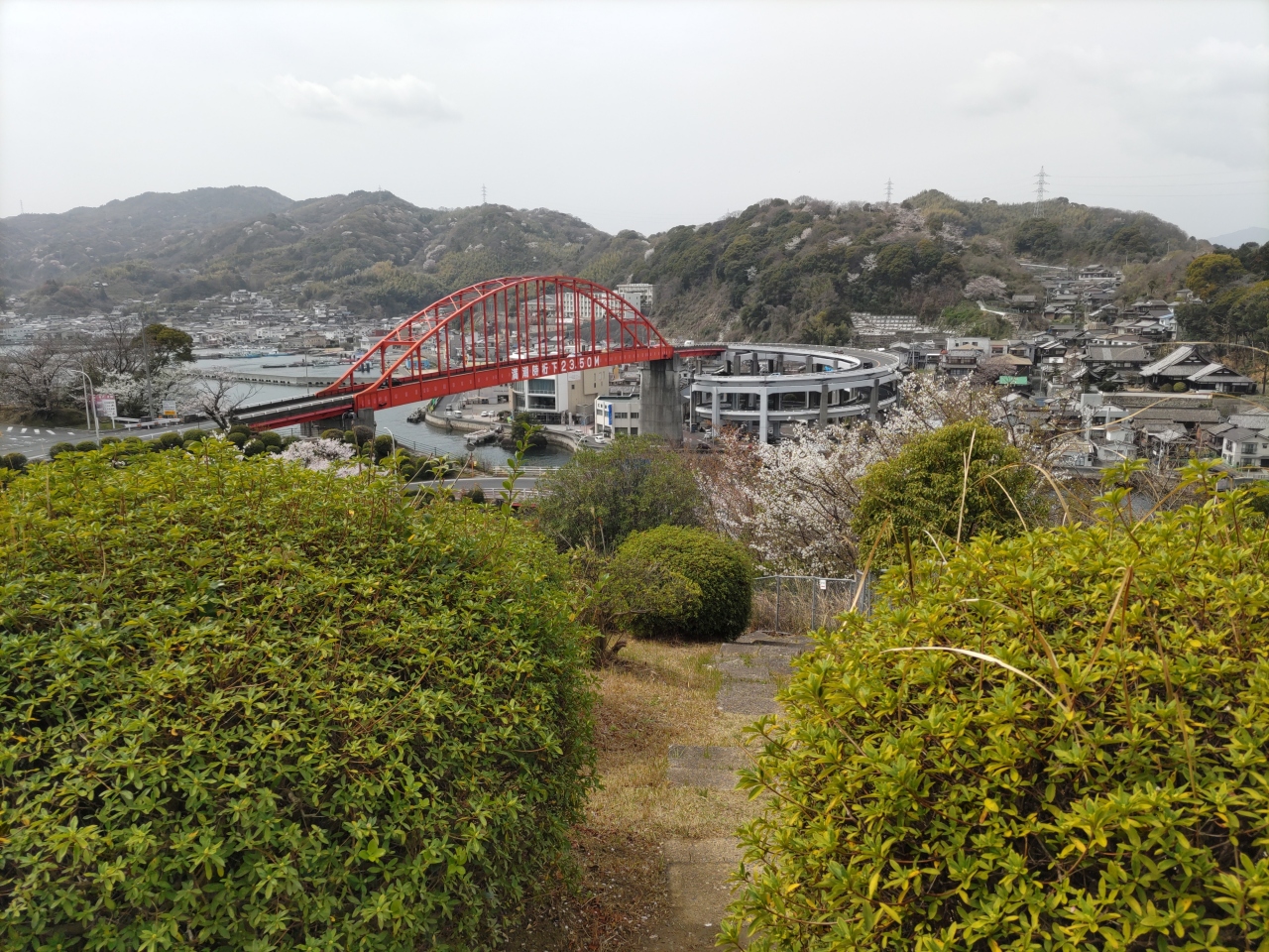 - 赤い橋と瀬戸の対比がとても綺麗。