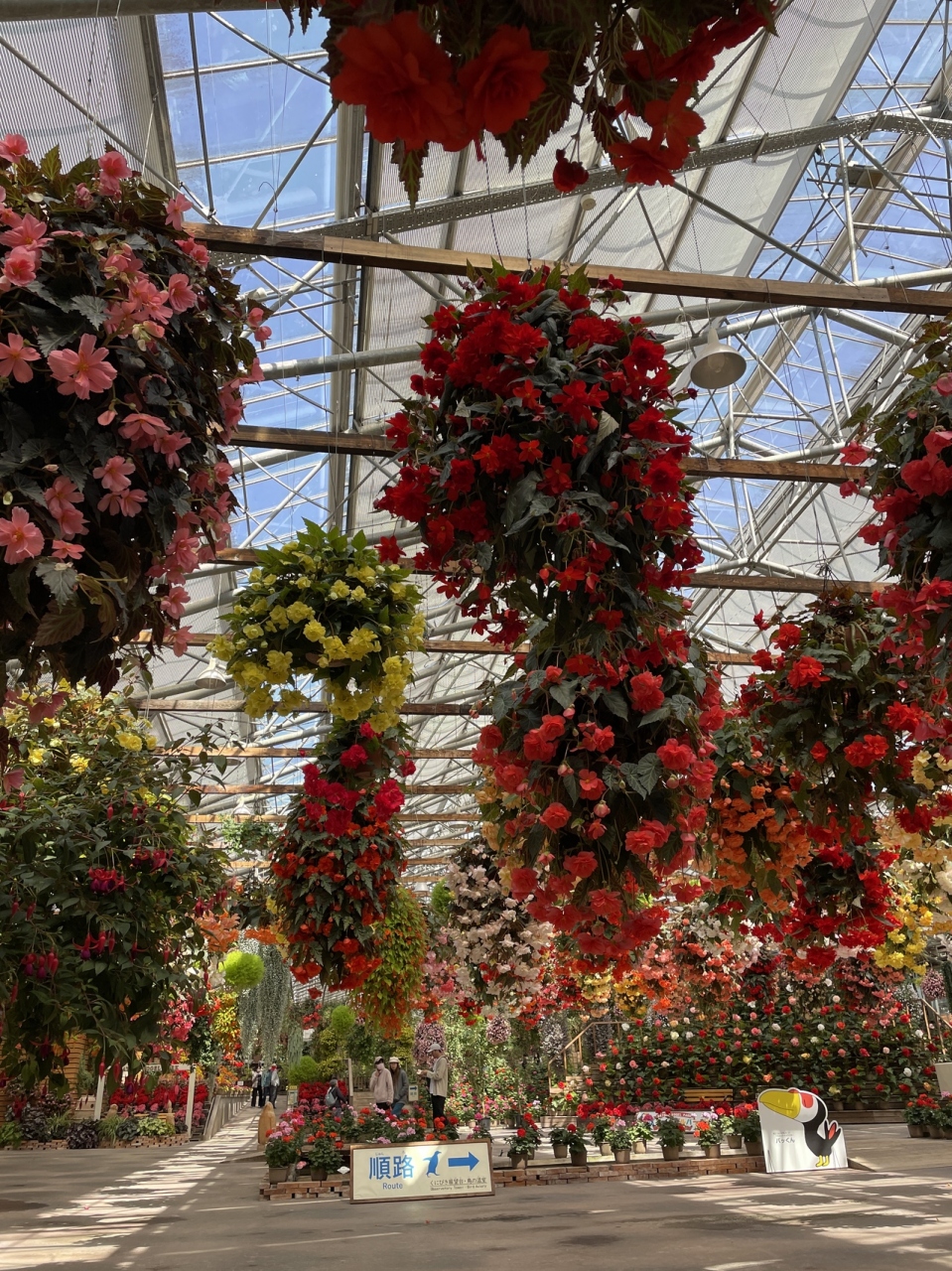入ってすぐに、上から吊り下げられるように、綺麗な花が飾られています。光が差し込み、花とのコントラストを楽しむことができます。園内にはたくさんの鳥がいて、放されているエリアもあり近くで見ることができます。餌やりをする事もできます。人も多すぎることはなく、ゆっくりと見ることが出来ました。