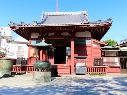 新奥山の北側、浅草寺西境内でもいちばん西側にあります。17世紀末の元禄年間に紀伊国加太の淡島明神を勧請して建てられたものです。東京大空襲で本堂が焼失したときに仮本堂となったこともあるお堂で、その後影向堂として現二天門の南に移り、1994年(平成6年)になって現地に移築されています。江戸時代から女性の守り神として信仰を集めて人気がありました。