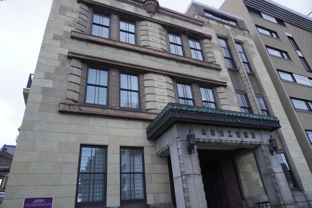 旧小樽商工会議所は小樽市指定歴史的建造物第10号。色内大通り沿いに建つ昭和8年築の鉄筋コンクリート造3階建。ただ、外装は石川県産千歳石の彫刻や玄関の土佐産の大理石とかが目立っていて、鉄筋コンクリート造の建物ではなくて石造りの建物みたいな印象。それなりの高級感があると思います。