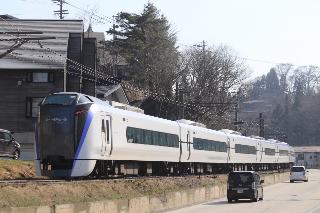 4月の春休み、金曜の朝の下り松本行の「あずさ」はぎっしり満席で、デッキや客室で立つ客もたくさんみられました。コロナ渦はいつもガラガラでしたが、回復を感じました。逆に大糸線直通あずさ、春休みの休日にもかかわらず、大糸線内はガラガラでした。