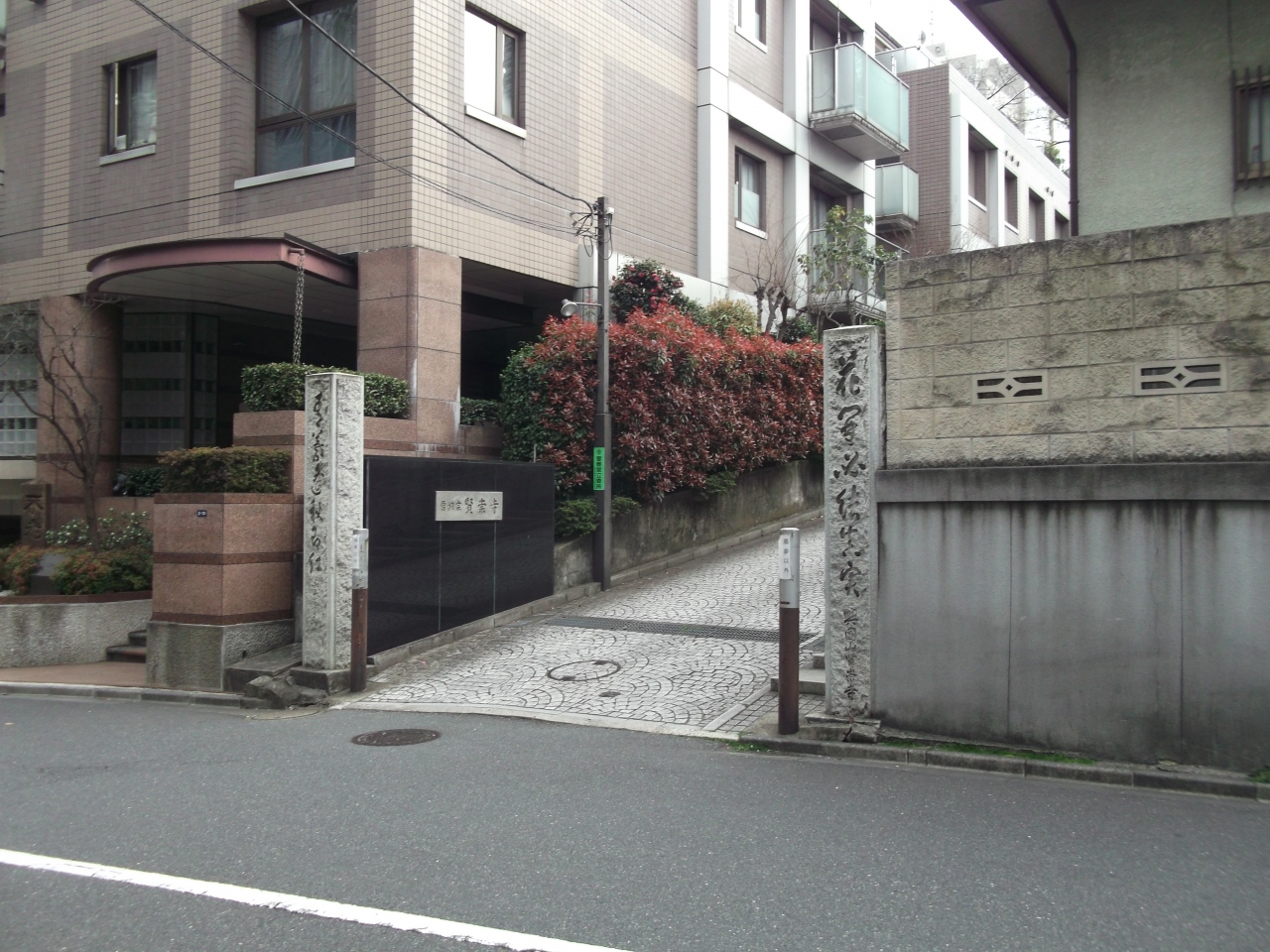 元麻布の大黒坂の途中にある曹洞宗の寺院です。通りから緩やかな坂の参道を上っていくと本堂がありました。元麻布という場所にしてはかなり広い敷地の境内で、お堂も近代的な立派な造りをしています。近くには鐘楼もあり、こちらも立派なものでした。