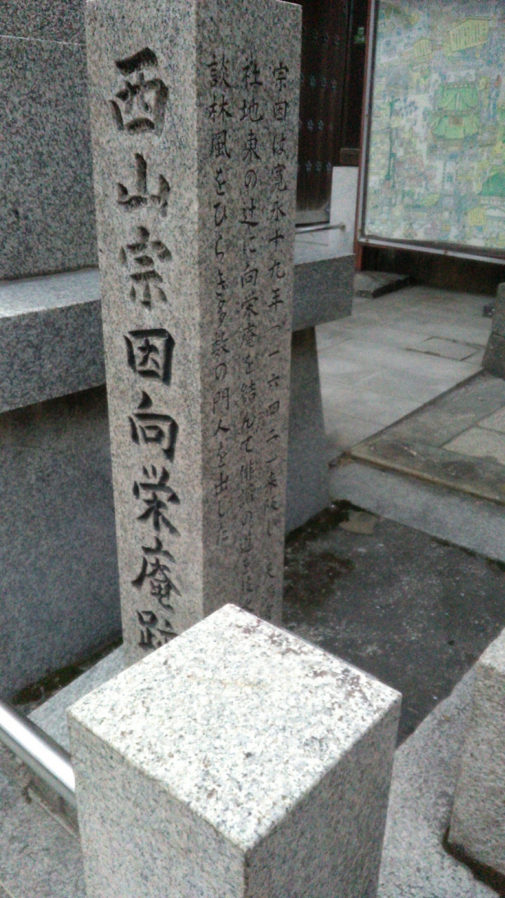 大阪天満宮の表大門の近くにあります。小さな石碑なので、あまり目立つ印象はないです。江戸時代前期の俳人で、大阪を中心に活躍されました。有名な俳人が弟子になっていて、地道に役立つ人という感想を持ちました。少し物知りになる事ができて嬉しいです。