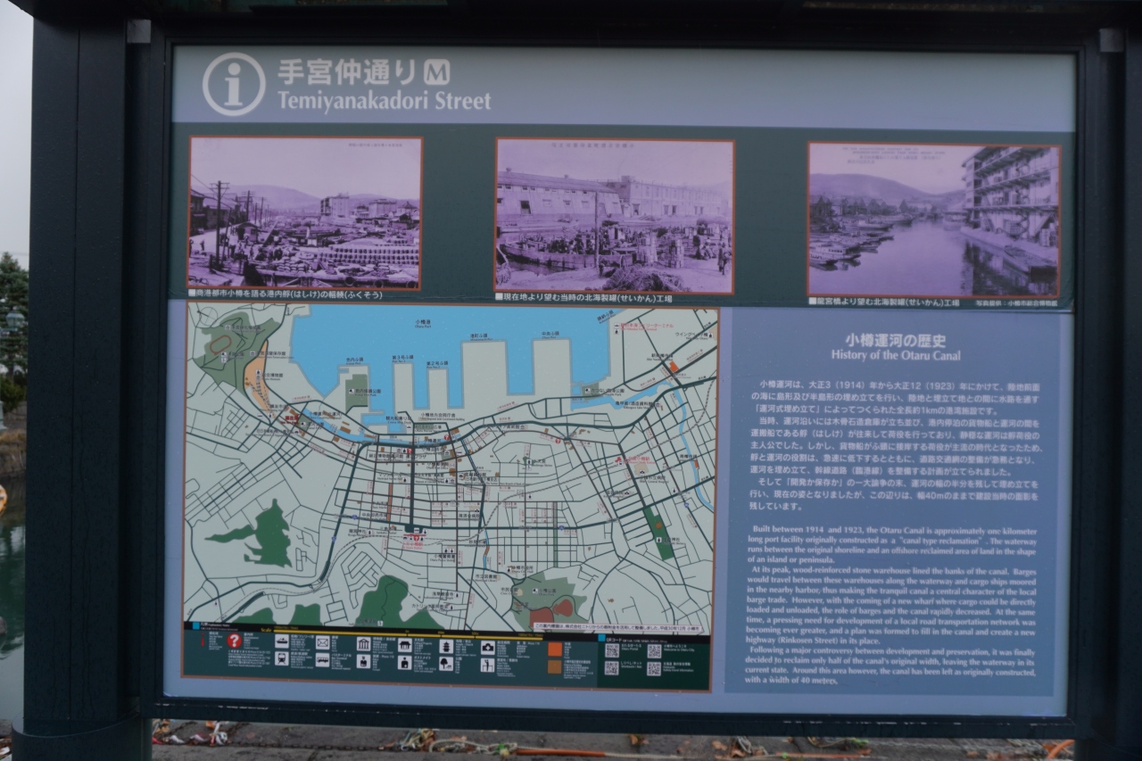 小樽運河の歴史が書かれていますが、結局、手宮仲通は北運河の西側に沿った通り。北運河は半分の埋め立てを逃れた場所なので、この手宮仲通の景観がかつては運河全体に見られたということ。そんな視点で眺める通りなのかなと思います。