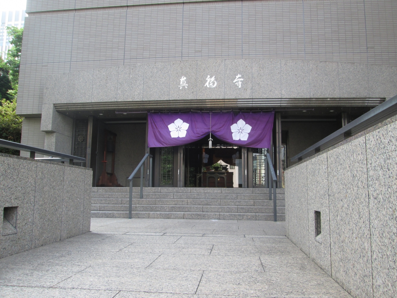 真言宗智山派智積院の東京別院です。創建は1605年、開山は中興照海上人、本尊は薬師瑠璃光如来像です。山門を通る、石段を登るとビルディングの二階に本堂があります。本堂入口の左に梵鐘があります。最近、東京にある寺院を訪れると、コンクリート製本堂またはビルの中に本堂があるという寺院を多く見かけます。耐久性や建物メンテナンスの点からコンクリート製の方が安価でベターなのかもしれませんが、古い人間の私から見ると違和感があります