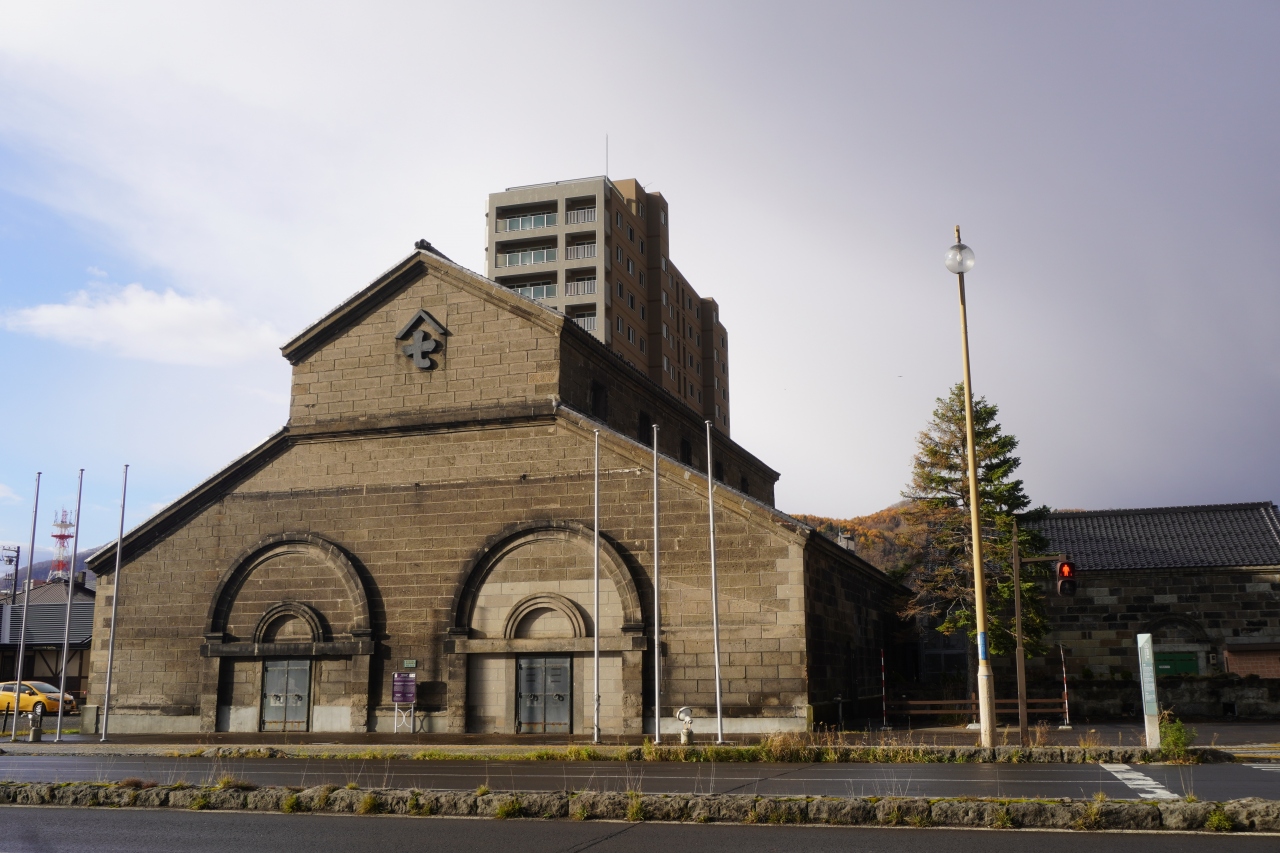 旧大家倉庫は、小樽市指定歴史的建造物第1号。明治24年、石川県出身の海産商、大家七平が建てた倉庫。外壁には札幌軟石を使用し、妻壁にはやましちの印。越屋根と入口部分の二重アーチもすっきりとしていて、若々しい印象があると思います。