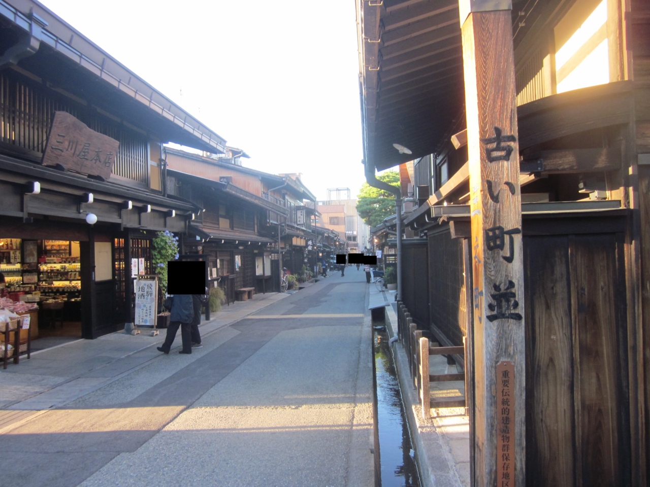 行く前に観光案内所で市内のマップを貰っていたので、ある程度の範囲は歩きました。横に長いエリアで1本の直線で言うと3キロはある感じです。古い民家を改装して様々な商店が並んでいて歩いていて楽しいエリアです。高山名物の、みたらし団子、飛騨牛の握り、地酒などの販売もあって食べ歩きされている方も多かったです。外国人旅行者も多かったです。