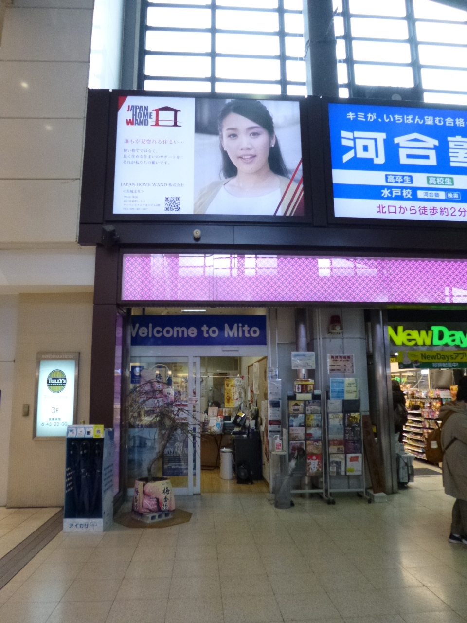 水戸駅近くでレンタサイクルをする前に駅構内の水戸観光案内所に立ち寄りました。あまり広い案内所ではありませんが、案内の方もいらして、マップやパンフレットも多く用意されていました。案内の方も丁寧に案内してくれました。ただ小規模ので案内の方も一人で、質問のある方は時間に余裕を持っていかれた方が良いと思います。