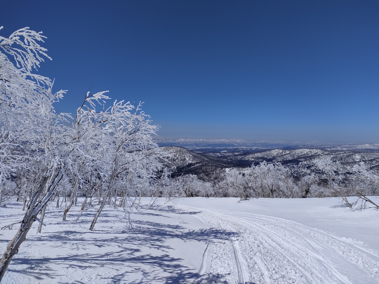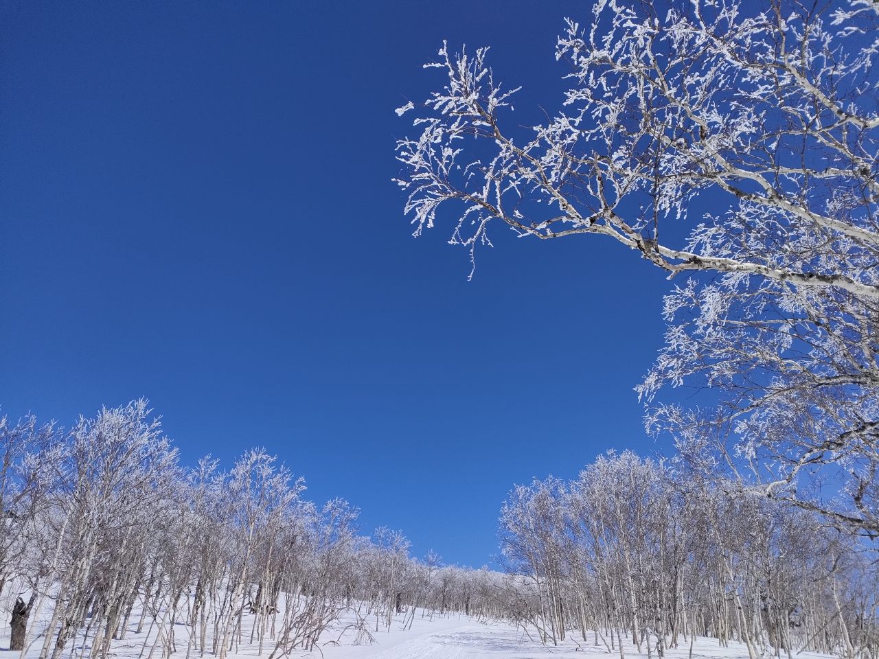 もちろん、スキーで行けば、好きなところに入っていって樹氷を楽しむことができますが、事前にスマホに登山アプリをインストールし、電波が届かないので予め地形図をダウンロードしておいて、山の地形を検討しながらコース取りをすると良いです。