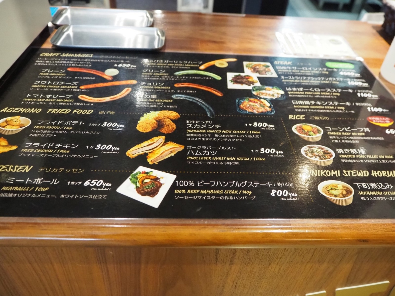 クラフトソーセージや、オリジナルステーキ、スカメンチ、ハムカツなどの揚げ物、コンビーフ丼や焼き豚丼などの丼物もあります。