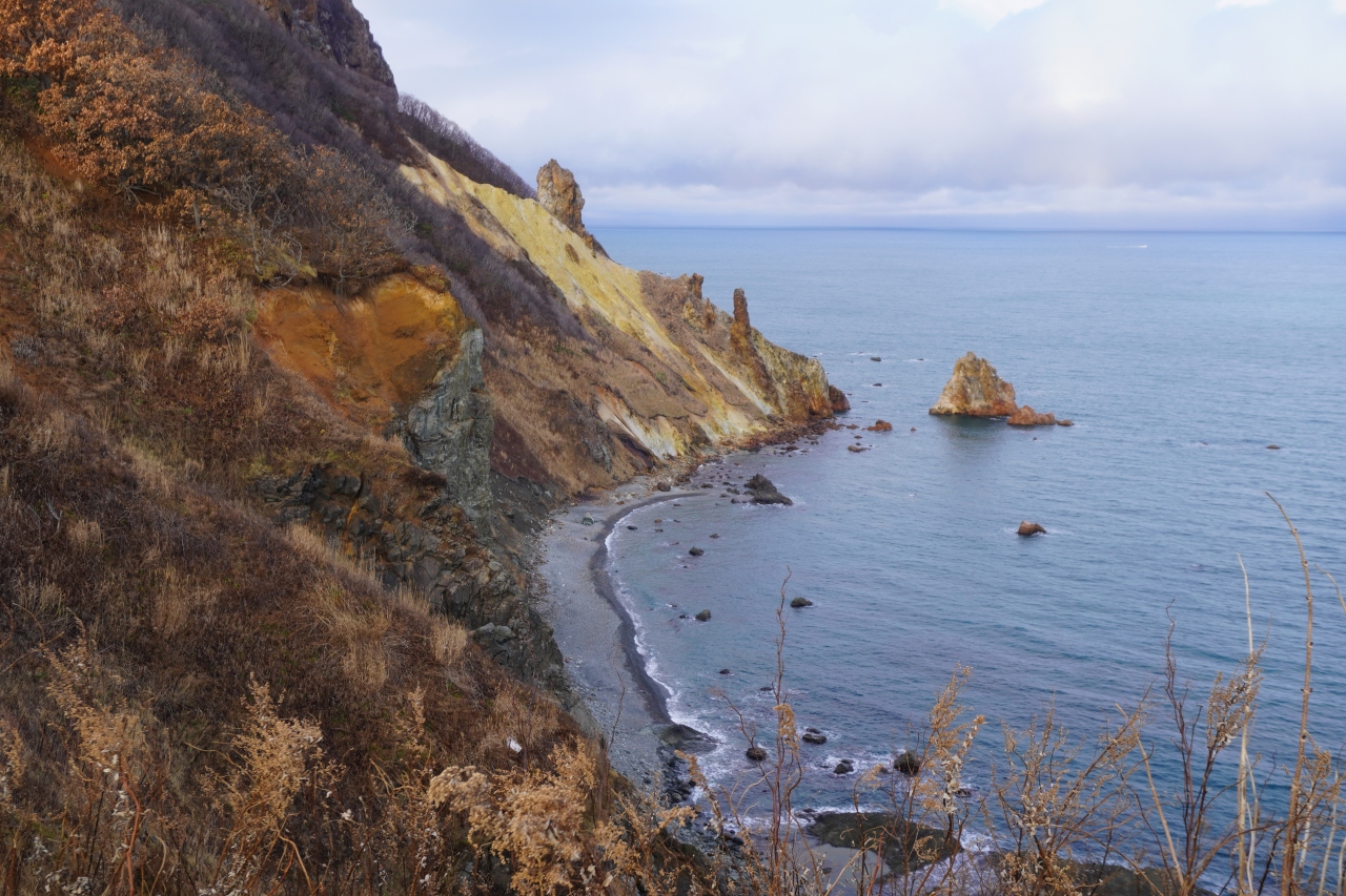 ニセコ積丹小樽海岸国定公園は、内陸部のニセコと海岸部の積丹半島、小樽海岸を含む広いエリア。写真は、祝津パノラマ展望台から小樽海岸の方を眺めたもの。小樽港や小樽市街辺りまでだとそこまでの荒々しさは感じませんが、ここまで来ると荒涼とした景色。一気に最果ての感じが募るように感じます。