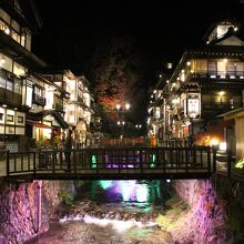 銀山川の両側に木造の宿泊施設が建ち並び 何とも言えないとても素敵な大正レトロ