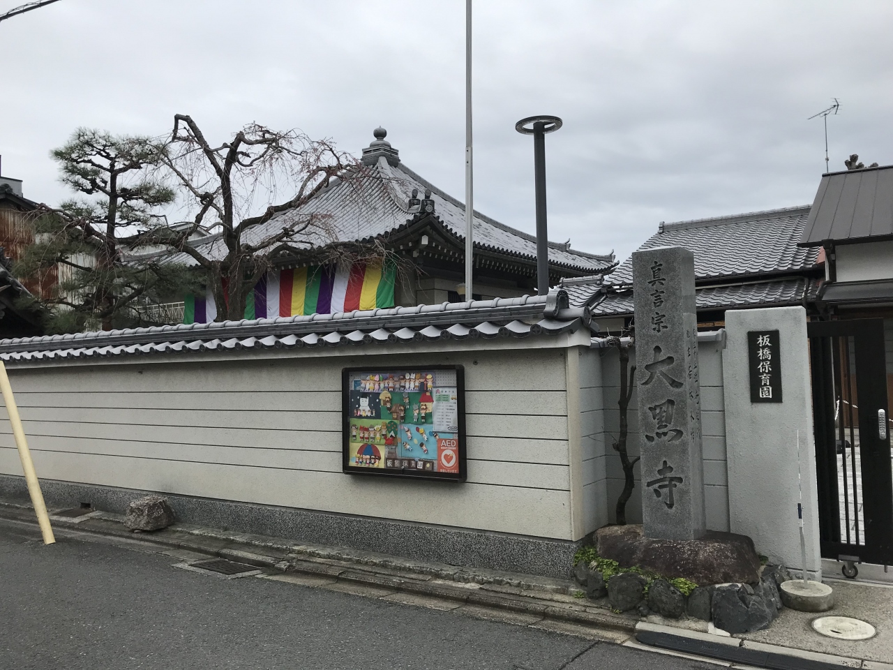 大黒寺は、京阪電車 伏見桃山駅から北西に徒歩5分余りのところにある真言宗の寺院です。この付近に伏見薩摩藩邸があったことから、薩摩の守り本尊「出世大黒天」に因んで大黒寺とよばれているそうです。山門脇には小さいですが雰囲気のいい庭がしつらえてありました。本堂の裏手には寺田屋事件の犠牲者のお墓があるそうです。
