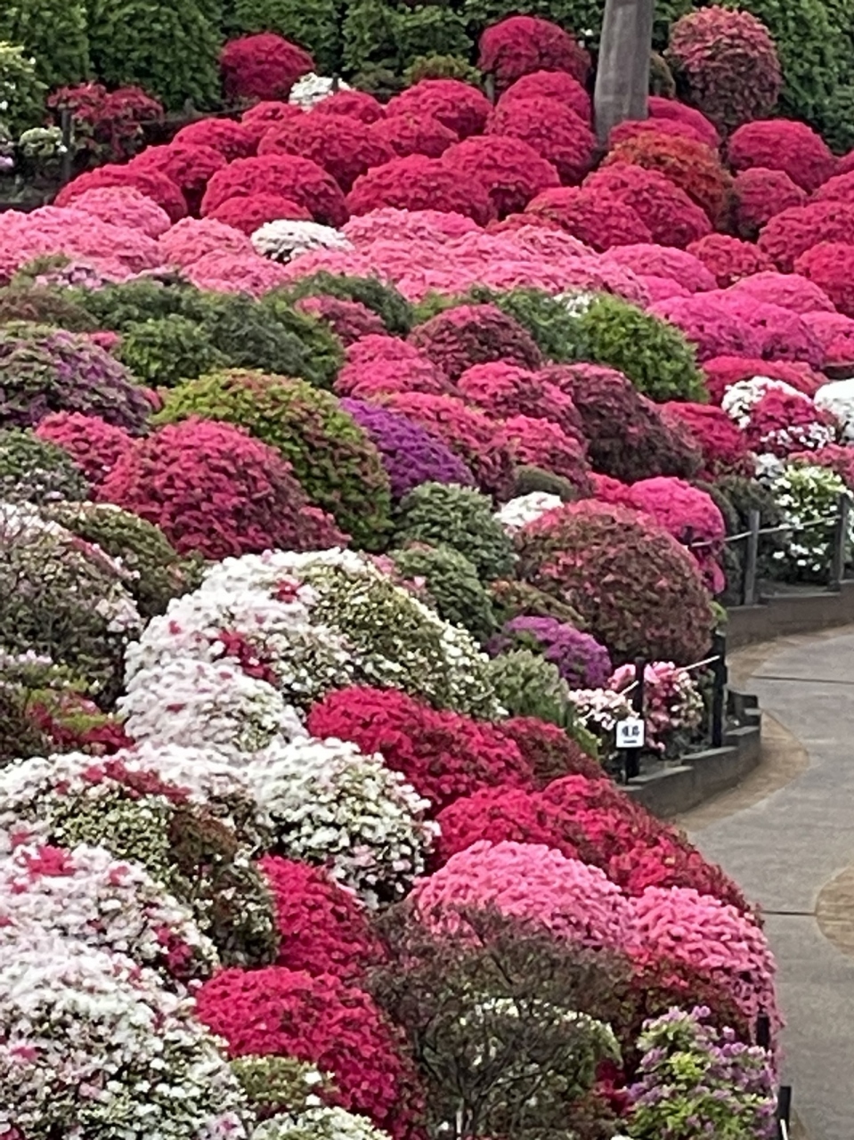 つつじ園に入るのには、300円かかりますが、まだ人がそんなにたくさんいないので、ゆっくり見ることができました。ばらや梅、桜のようにつつじにも色々な名前があるんですね。いい天気だったので、赤い鳥居もとてもきれいでした。