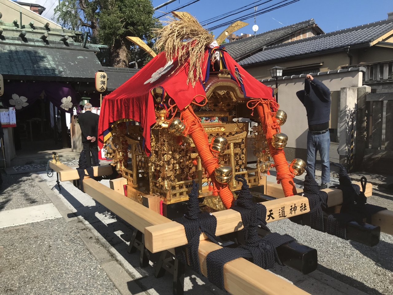 天道神社は仏光寺通沿いにある神社です。平安京の遷都と同時に長岡京から京都にやって来た神社です。11月の例大祭に行ってきました。当日は狭い場所に大勢の人々が集まっていました。訪れると境内に巡行する神輿が置いてあり、訪れた方々が記念撮影を楽しんでいました。中々威勢のいい御神輿巡行で、楽しかったです。