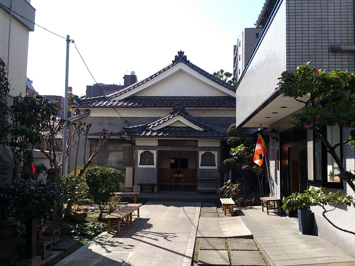 東京メトロ銀座線稲荷町駅から徒歩5分程度、台東区元浅草4丁目の浅草通り沿いに建つ真言宗智山派寺院です。慶長16年(1611年)東日本橋に創建され、正保元年(1645年)現在の場所に移転したそうです。昭和20年(1945年)の東京大空襲で焼失してしまい、現在の建物は昭和28年(1953年)に再建されたものです。山門や参道が有るので寺院と気付きますが、本堂は普通の民家の様に思えました。