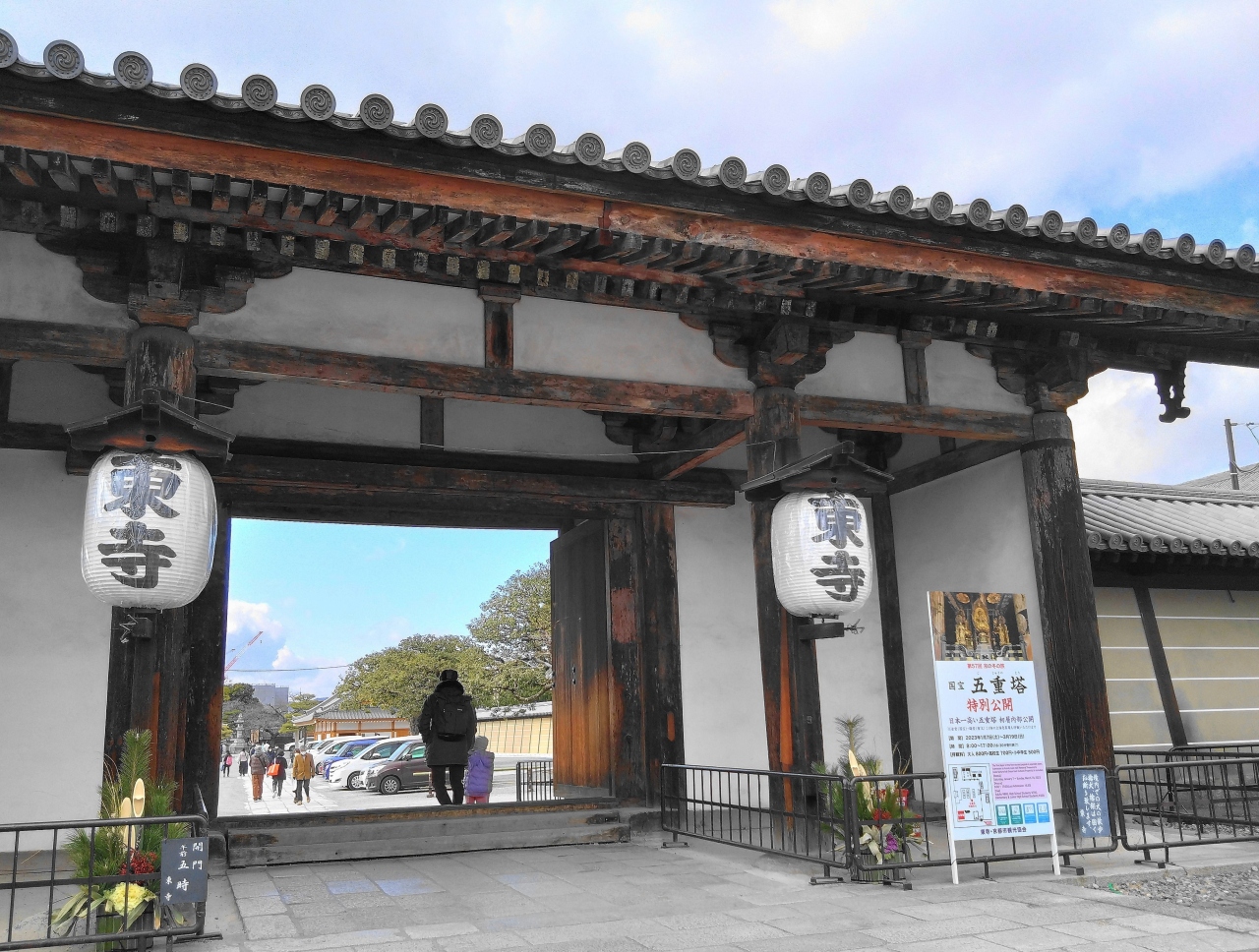 正門にあたるのは南大門ですが、京都駅八条口から歩いて東寺を訪れると最初にあるのが大宮通に面している「慶賀門」です。
