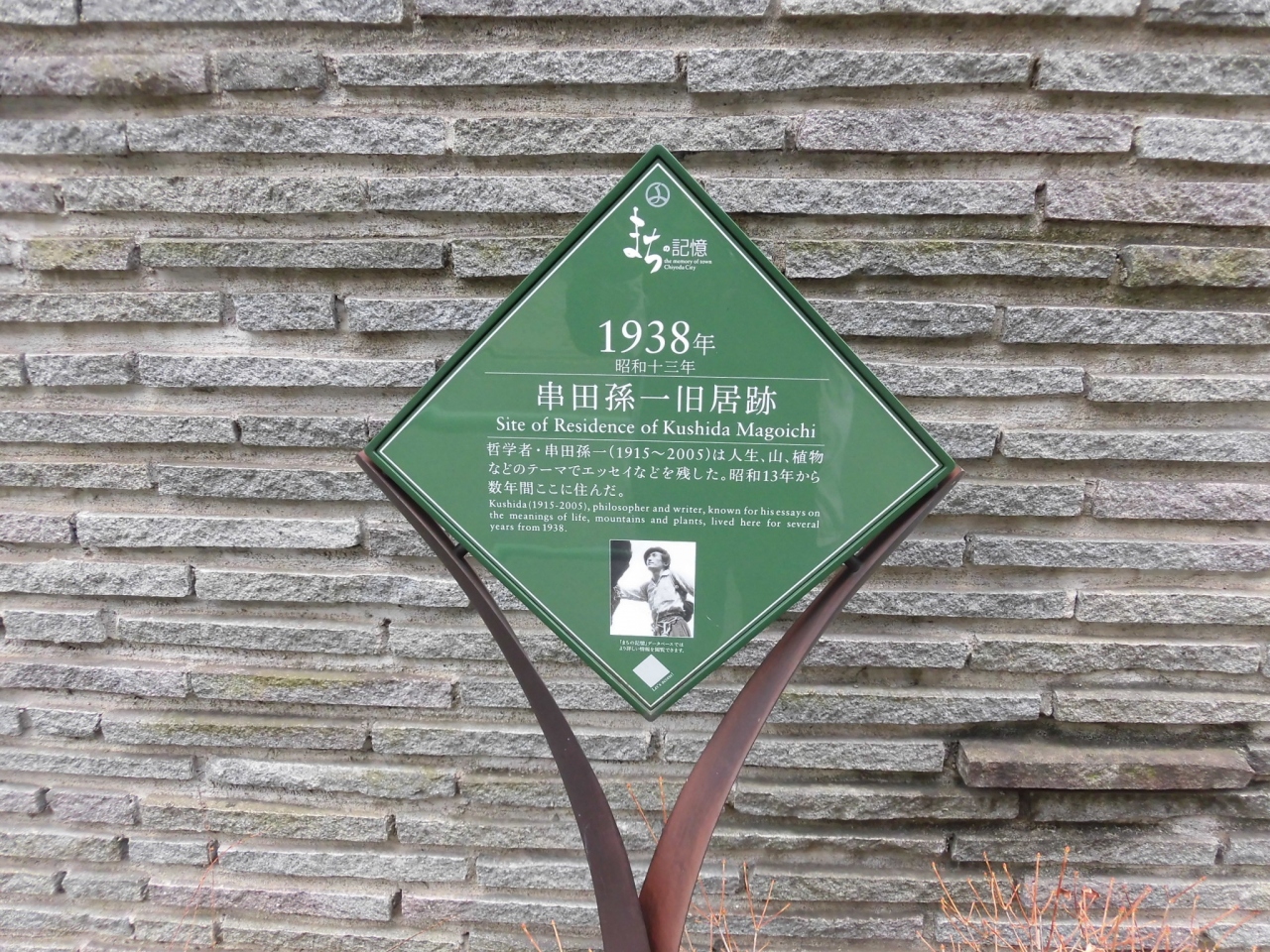 千代田区の番町文人通り沿いに散策していた時に、マンション前の道路わきに案内プレートを見つけたので立ち寄りました。現在、演劇界で活躍している演出家の串田和美さんのお父さんで、哲学者、串田孫一の住居があった旧跡が記されていました。ただ、案内プレートだけなので、建物などの手がかりもなくて、想像するしかありませんでした。