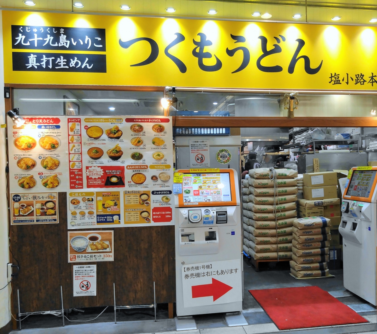 地下東口改札すぐにある「つくもうどん」さんは、人気のおうどん屋さん。