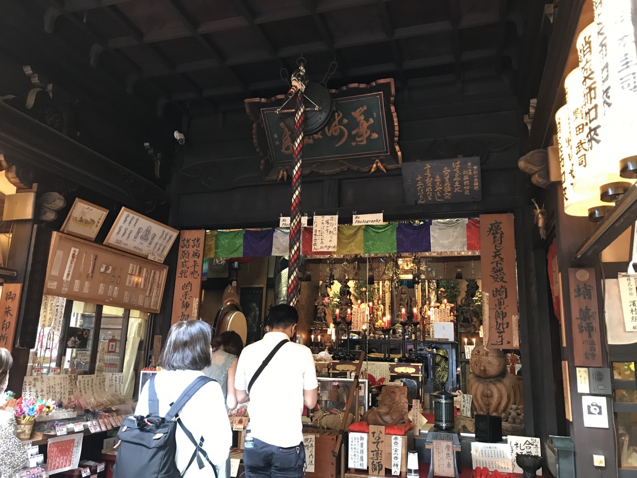 蛸薬師堂は、中京区新京極通蛸薬師上ルにあります。正式名称を「浄瑠璃山 林秀院 永福寺」といいます。本尊の薬師如来(蛸薬師)から名前がきているみたいです。ちょうちんがたくさん飾ってあって目立っています。本堂にはあちこちにタコの置物やぬいぐるみが置かれていました。木彫りのタコは繰り返し撫でられてピカピカになっていました。