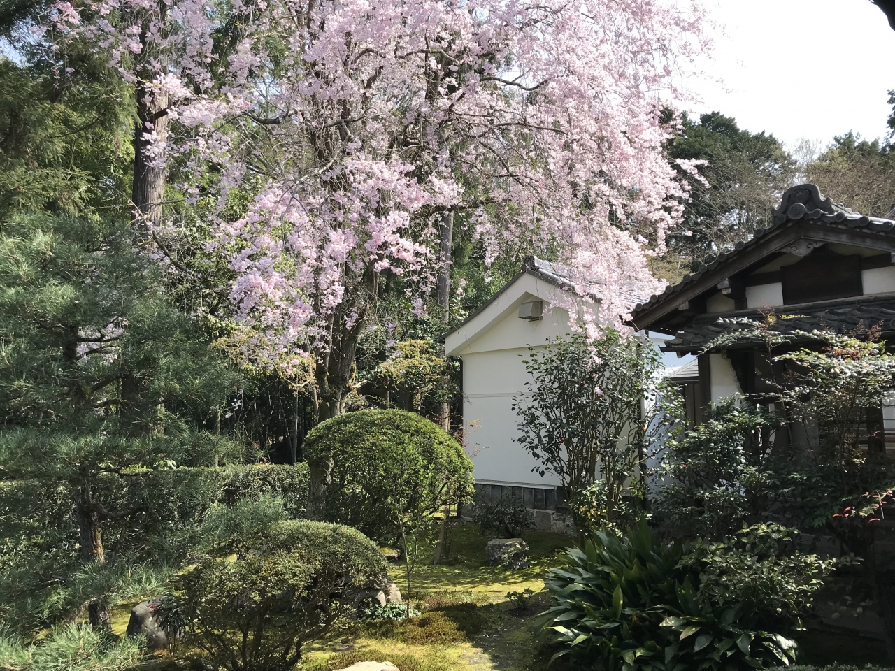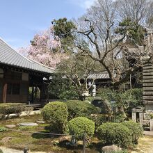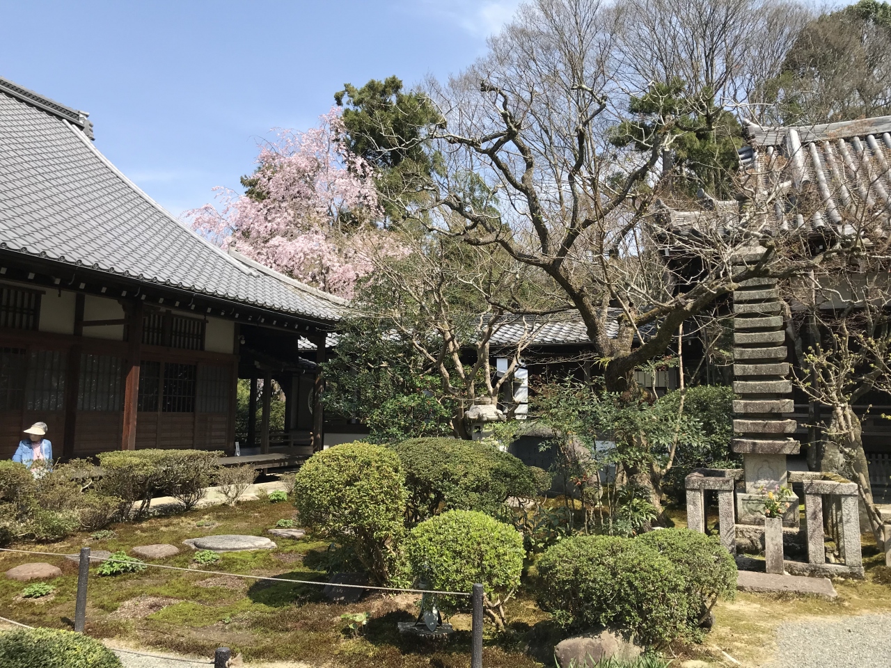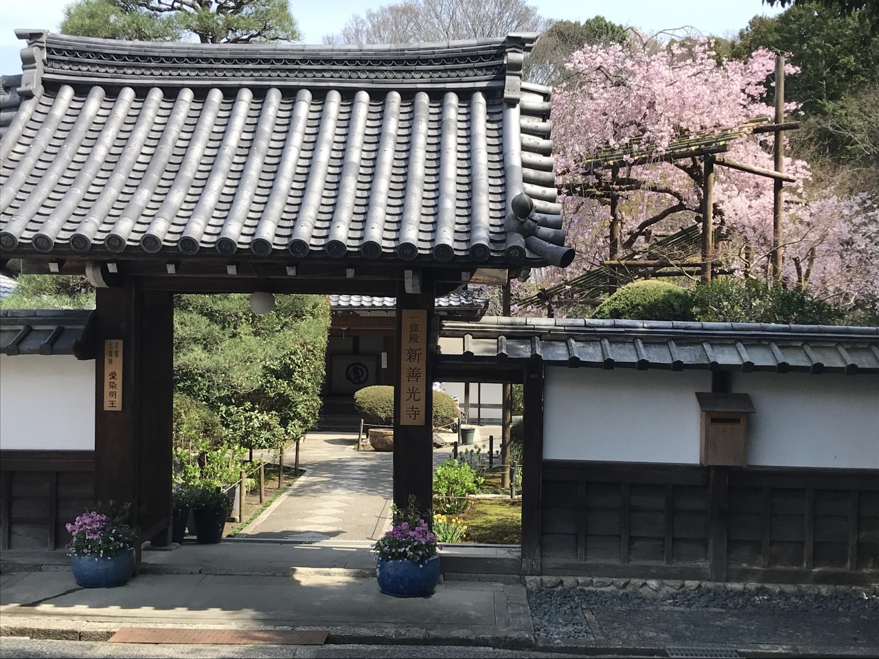 泉涌寺を参拝した後に参道を歩いていると新善光寺の山門隣にもきれいな桜が見えたので訪れました。このお寺はいつも境内の庭がよく手入れされていて素晴らしいです。また池の錦鯉もきれいな水を身持ちよさそうに泳いでいました。境内の奥にもシダレ桜が咲いていました。