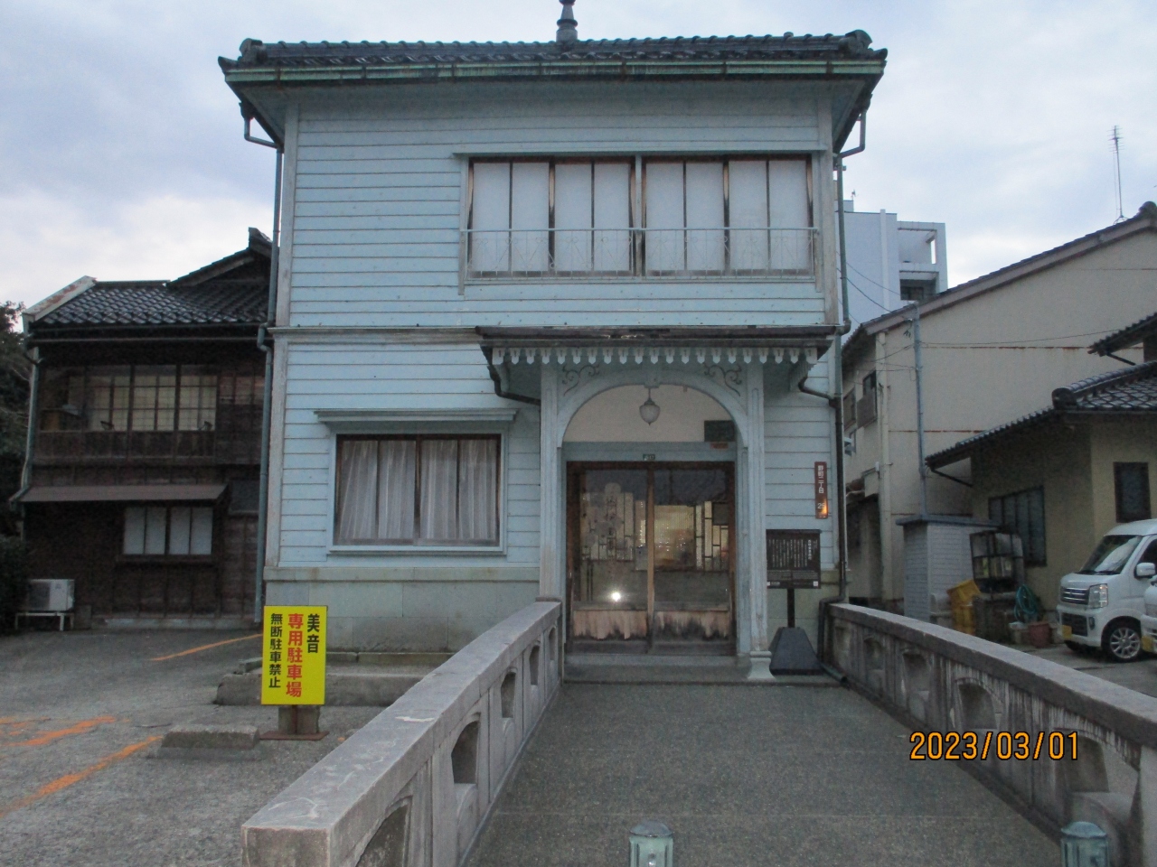にし茶屋町を歩いている時こちらの建物を見かけました。こじんまりとしていてブルーのパステルカラーと和洋折衷のデザインが特徴的です。最初交番かなにかかと思いました。こちらは大正11年に建てられた建物で、芸妓の稽古場&管理事務所として使われていたそうです。意外だなと感じました。