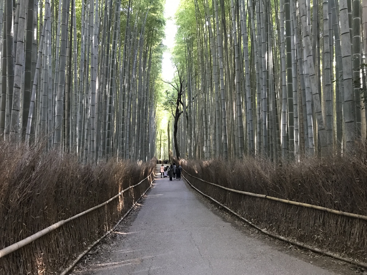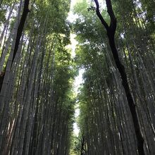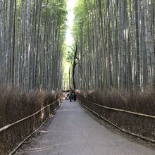 両側に設けられた小柴垣と、空に向かって真っ直ぐ伸びた数万本の竹が生い茂り、着物姿の観光客や人力車が行き交う光景は、何とも言えない京都らしい風情を感じる空間です。空気が清々しく、いかにも嵯峨野を代表する観光スポットです。ここが一番きれいに見えるのは雨上がりすぐの日だそうです。雨上がりに少し濡れた竹の方が、竹の緑が鮮やかに見えて綺麗いなのだそうです。