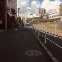片側1車線の車道で、交通量は多くなく、ところどころに警察官がいました。上部には参議院議長公邸があります。歩道は幅が狭かったです。江戸時代にこの坂付近には3人の屋敷があり、苗字に、ベが付いていたのでこの坂の名称です。