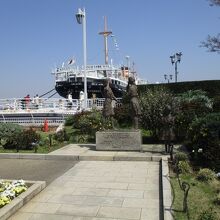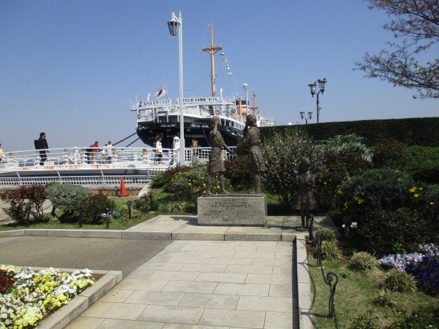 山下公園氷川丸の近くにありました。快晴で横浜港の景色が綺麗で良かったです。少女2人が握手をしながら敬礼を台座にはやくそくと彫られていました。日米友好の記念としてアメリカガールスカウト50周年とガールスカウト日本連盟の世界連盟加入を記念して昭和37年に建てられたそうです。水の守護神石像の先にありました。