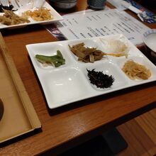 ビジネスホテルの和朝食のおかずがおばんざいとして食べ放題、それにカレーもあり食欲旺盛な方にはお得です。料金の内とひじきの煮物やきんぴら、春雨の酢の物他、どんなものかと味見しました。選んだメニューの天丼もボリューム一杯でだし汁でのお茶漬け風の食べ方も出来ずに終わりました。夕食よりランチ利用が良かったかなと思いました。
