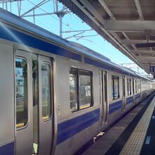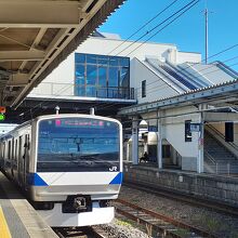 取手駅までは緑のラインの電車が頻発していますが、電流が直流から交流になるこの駅からは電車の本数が減ります。