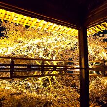境内に咲き乱れる千本を越える桜も鮮やかにライトアップされています。