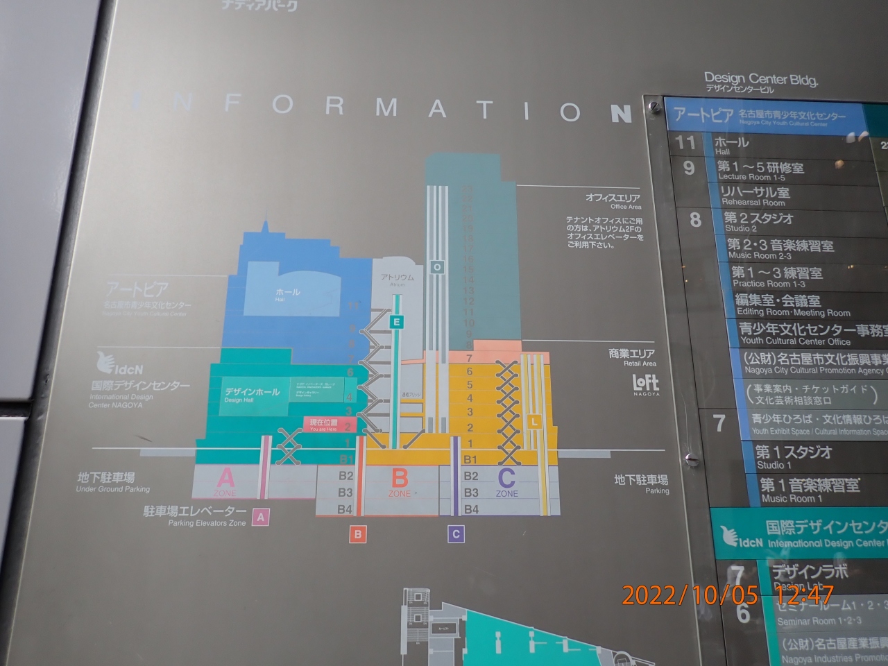 名古屋市観光で立ち寄りました。ナディアパークは、矢場公園北隣の目立つビルで、大きな建物は、デザインセンタービルとビジネスセンタービルの2つのビルで構成されています。左右で高さはかなり異なっていて、ビジネスセンターが23階、デザインセンターが11階でした。