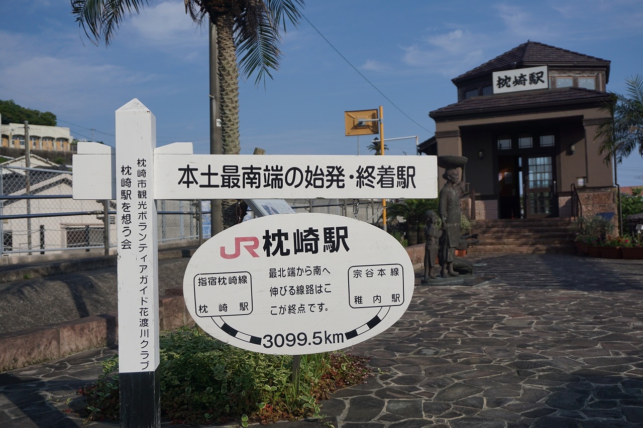 JR/指宿枕崎線の終点の駅。駅前には、「本土最南端の始発・終着の駅」という碑があります。最北端の稚内駅から3099.5kmの距離です。かつては、この先、鹿児島交通の枕崎線が乗り入れていました。現在の駅舎は、2013年のもので、とっても新しいです。鉄道好きだけでなく、観光のスポットとしても訪れる価値ありだと思います!
