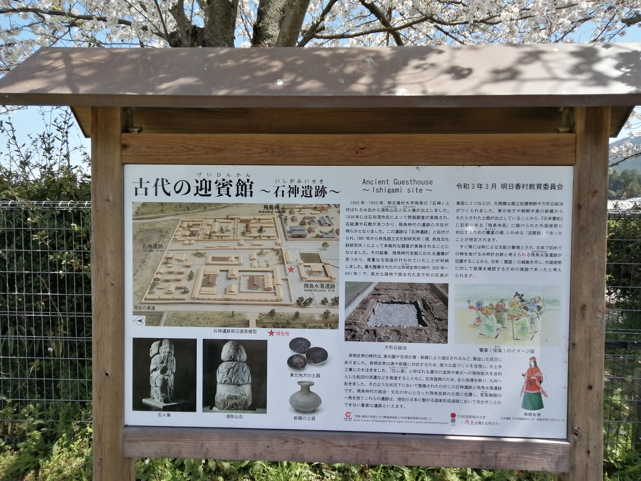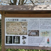 現在の明日香村埋蔵文化財展示室がある一帯にあった古代の遺跡。当時の迎賓館のような施設と考えられています。発掘調査が行われ、数々の遺構が発見されたようですが、現在は大部分が埋め戻され見ることはできません。上記展示室の駐車場の一画(飛鳥水落遺跡近く)に当時の建物の配置図などが描かれた案内板が設置されています。それをみるとイメージしやすいと思います。