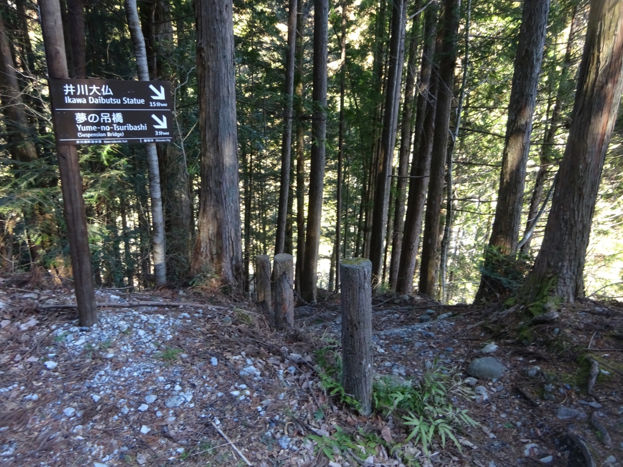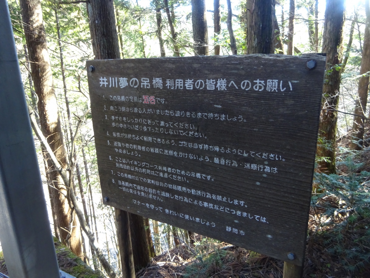 井川駅方面から廃線跡遊歩道→夢の吊り橋→井川大仏というのが一つの散歩コースになっていました。ちなみにこの吊り橋から井川大仏まではひたすら階段の上りで、結構きついです。