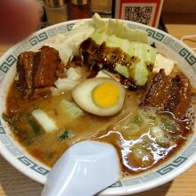 豚角煮は味がしっかりと染み込んでいて柔らかいです。麺は中太麺でスープがよく絡みます。