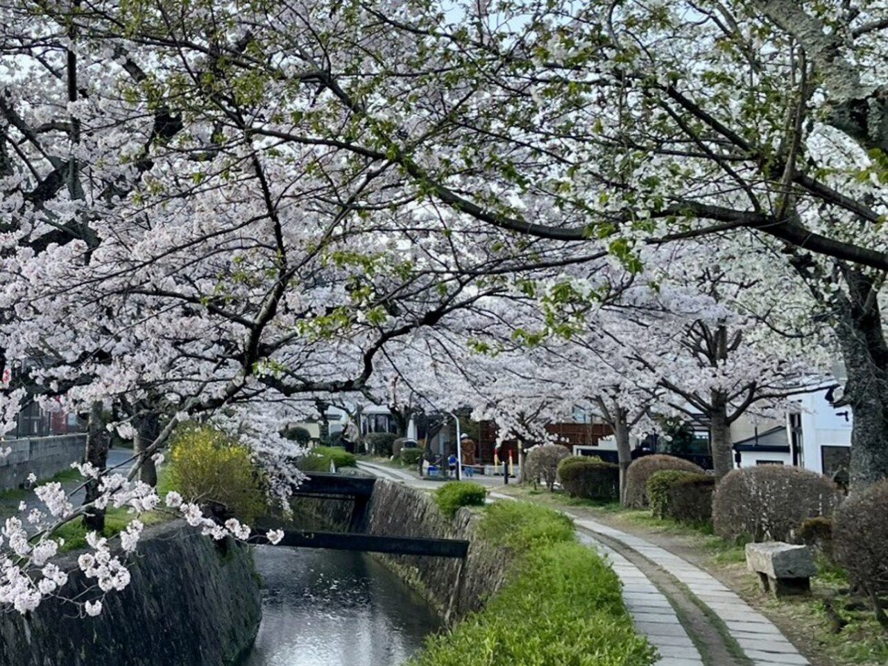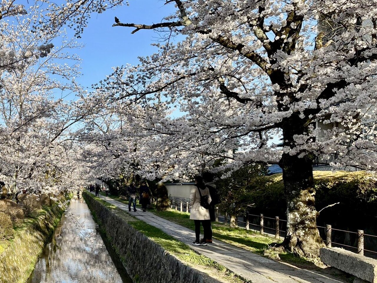 朝6時。早起きをして、宿の朝ごはんの前に、運動を兼ね、南禅寺から、哲学の道を通り、銀閣寺方面まで、散歩してきました。意外にも結構な人が歩いていました。桜も見頃を迎え、昼間は道がいっぱいになるくらい人が押し寄せてくるので、情緒深い、とても気持ちの良い散歩をすることができました。