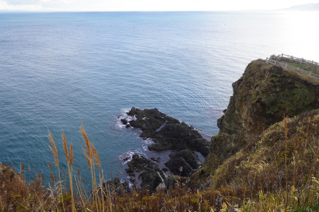 祝津赤岩海岸と小樽海岸の範囲はどういう関係なのかよく分からないところがあるのですが、祝津港に近いという意味では、日和山灯台や小樽市鰊御殿の先の見晴らしのいい場所から見る海がけっこう迫力がありました。切り立った崖の下にごつごつした岩場がちらりと見えて、ちょっと怖いくらいです。