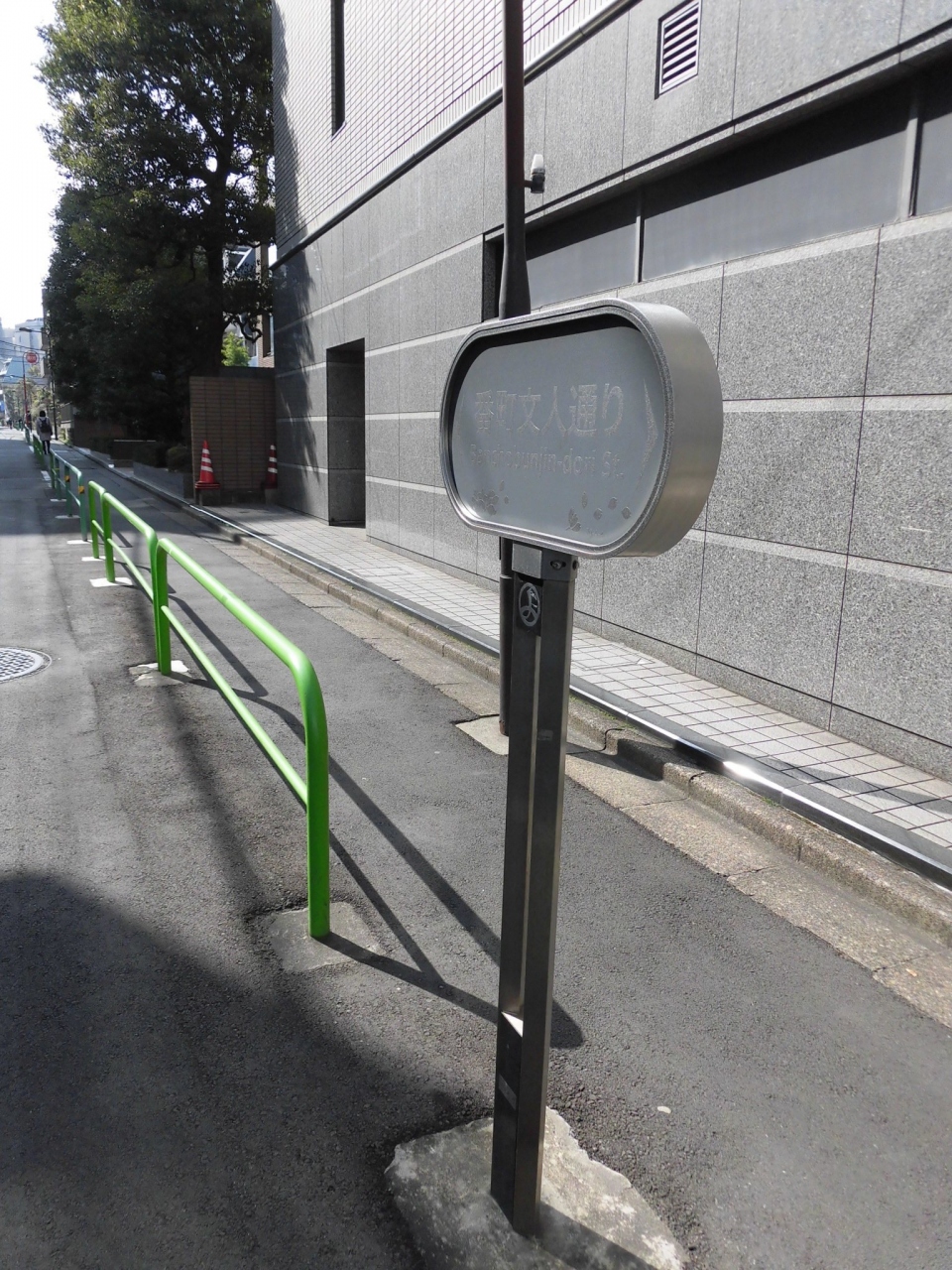 JR四ツ谷駅から麹町近辺に向かって散策していた時に、番町文人通りを通りました。その名の通り、この通り沿いに多くの有名な文人、文化人が住んでいた住居跡などの旧跡が、案内プレートとともに残されていました。ちょっとインテリ風の通り名が洒落ていると思いました。